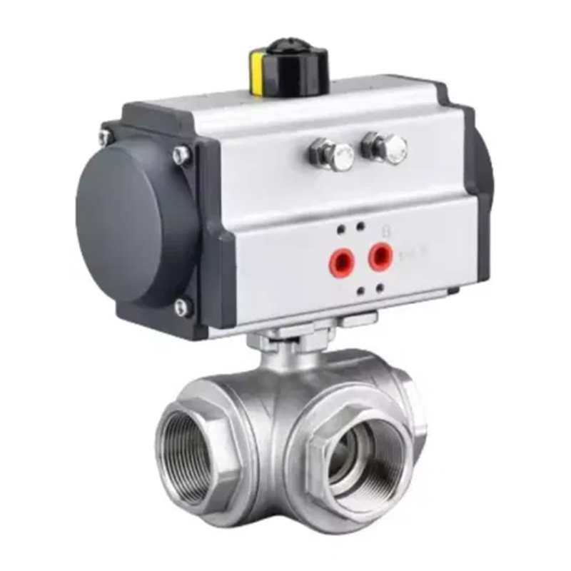 Q614/15F injap bola benang dalaman tiga hala pneumatik boleh berbentuk L.. atau berbentuk T. Injap bola tiga hala (Q614F) digunakan untuk menukar arah aliran medium dan boleh menyambungkan dua saluran tegak lurus; Injap bola tiga hala (Q615F) digunakan untuk pengalihan sederhana, pertemuan dan arah aliran beralih. Tiga arah berbentuk T boleh membuat tiga saluran saling berkaitan atau menyambungkan dua daripadanya. Injap bola tiga hala pneumatik umumnya mengamalkan struktur dua tempat duduk, dan juga boleh menggunakan struktur empat tempat duduk mengikut keperluan pengguna. Ia digunakan secara meluas dalam bekalan air, petrokimia, metalurgi, perlombongan, tekstil, tenaga, pembuatan kertas, makanan, keluli dan sistem saluran paip lain untuk menukar arah aliran medium dan mengalihkan atau mencampur medium.